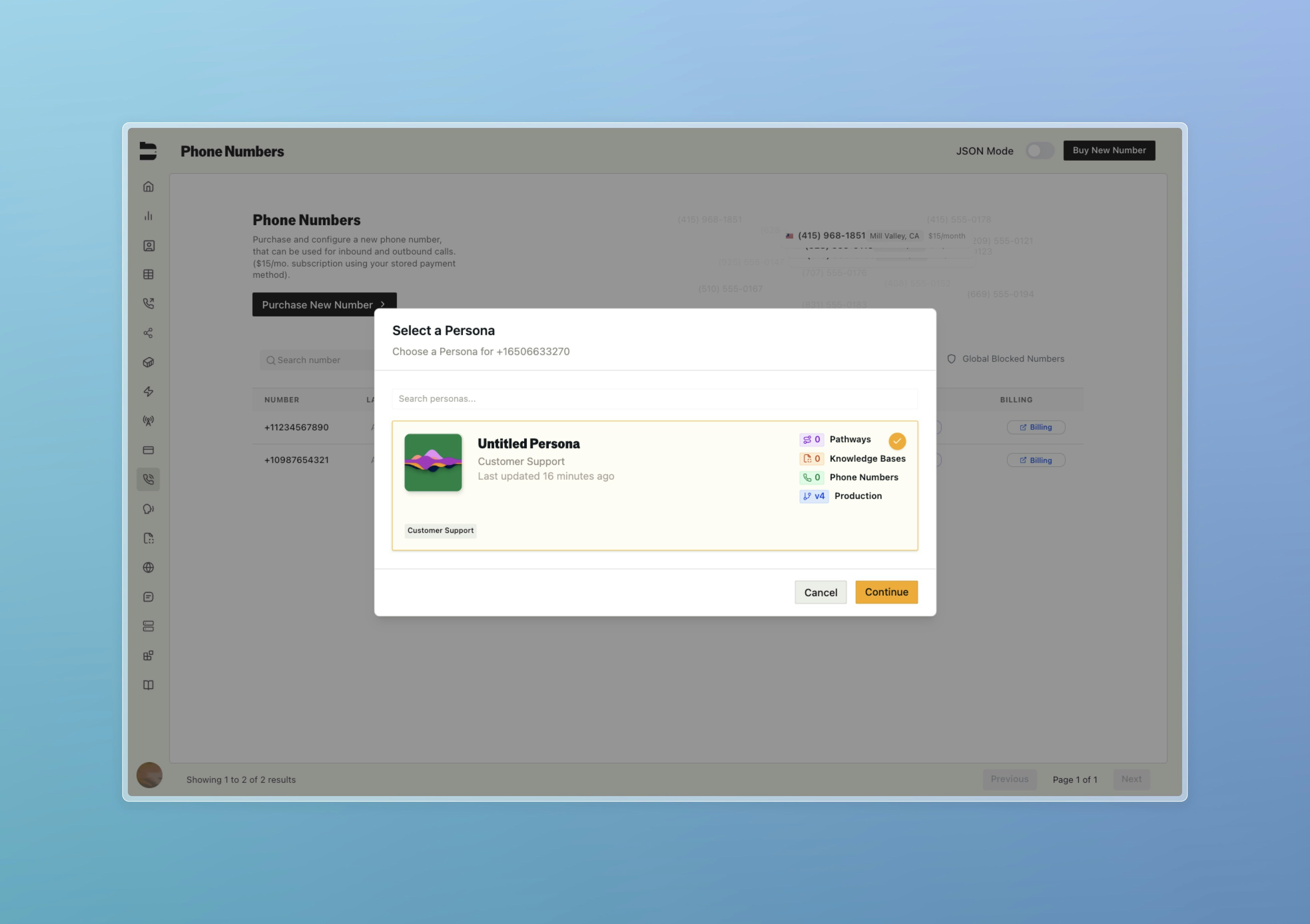 Apply one persona across multiple phone numbers, or use different personas for specific use cases.