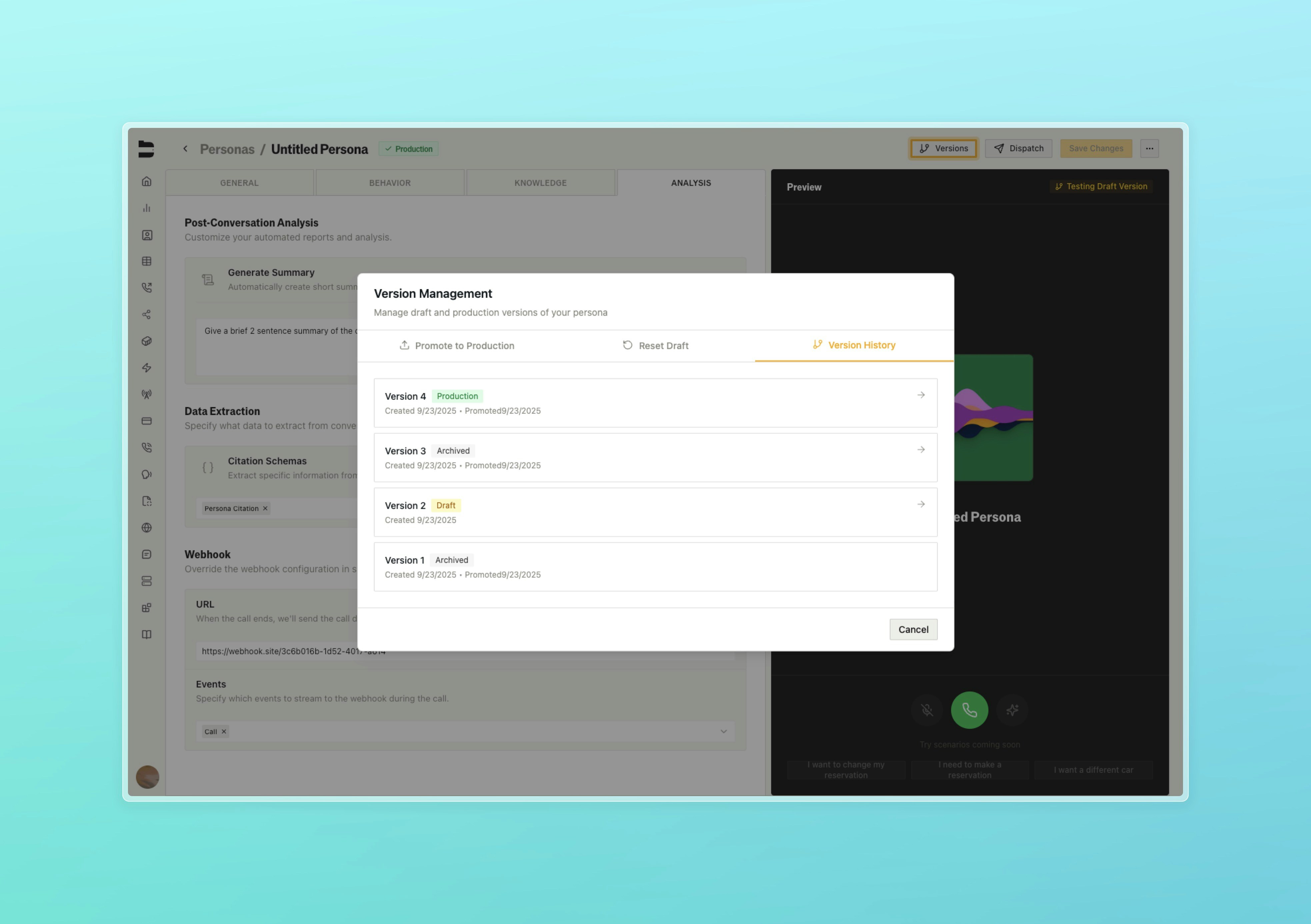 Manage your persona’s versions and deployment lifecycle.- Version Control